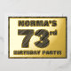 La façade de cette audacieuse carte d'invitation de fête/fête de soixante-treize ans comporte un nom modifiable, un grand numéro "73e", le message "Fête de l'anniversaire !", et une frontière, toutes avec un motif rustique, mais sophistiqué, à la fausse grain de bois inspiré. Le verso présente des détails personnalisés sur l'événement, tels que la date, l'heure, l'emplacement/le lieu et toute autre information pertinente. Des invitations personnalisables comme celles-ci pourraient être utilisées pour les participants invitations à une réunion d’anniversaire qui se tient pour célébrer le 73e anniversaire de quelqu’un. [~Z0000595]