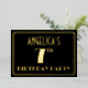 L'avant de cette invitation à la feuille de septième anniversaire inspirée et vintage apparence de Roaring Twenties comprend un nom personnalisable, un grand look art déco inspiré du numéro "7th", le message "BANTHDAY PARTY", et un motif frontalier composé de lignes. Il y a un arrière - plan de couleur noire sur le devant par défaut, mais il peut être customisé à une couleur différente si désiré. Le verso présente des détails personnalisés sur l'événement, tels que la date, l'heure, le lieu et toute autre information importante. Des invitations luxueuses, élégantes et customisées comme celles-ci peuvent être utilisées pour des invités invitations à une fête d’anniversaire ou à une réunion organisée pour honorer le 7e anniversaire de quelqu’un. [~Z0000591]
