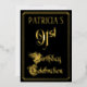 La façade de ce feuilleton luxueux et cossu, quatre-vingt-onze ans/invitation de célébration, présente le message "91st Birthday Celebration" dans un texte orné de style script. Il comporte également un nom modifiable. Par défaut, l'arrière - plan de l'avant est coloré en noir (bien qu'il puisse être customisé à une couleur différente). Le verso présente des détails personnalisés sur l'événement, tels que la date, l'heure, l'emplacement et toute autre information pertinente. Des invitations élégantes, fantaisistes et customisées comme celles-ci pourraient être utilisées pour des invités invitations à une fête d’anniversaire ou à une fête célébrant le quatre-vingt-onze anniversaire de quelqu’un. [~Z0000589]