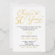 Feuille d'or véritable élégante et blanc pour les 50 ans, invitation pour un anniversaire de mariage d'or 50ème. Pour modifier le texte, utilisez les options de personnalisation. Pour des changements de texte plus importants, y compris la modification de la police, de la couleur de la police, de la taille de la police et/ou de l'emplacement du texte, utilisez l'option "personnalisez-le". Ce magnifique design feuille d'or véritable et blanc pour les 50 ans convient parfaitement pour un anniversaire de mariage en or. Élégant et sophistiqué. Les parties dorées de cette invitation sont imprimées en utilisant une feuille métallique en or véritable. La couleur de fond blanc peut être modifiée dans l'outil de conception.