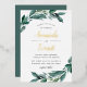 Les invitations à un mariage botanique élégantes présentent une palette de couleurs chic de vert de forêt, noir épais et blanc immaculé avec des accents de feuille d'or. Les détails de votre mariage sont drapés d'abondantes branches vertes et de feuilles dans un style aquarelle coloré et vibrant.