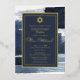 Invitation En Aluminium Abstrait Blue Gilded Photo Bar Mitzvah Real