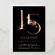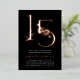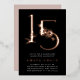 Célébrez son anniversaire d'étape avec ces invitations chic à la soirée d'anniversaire de quinceanera avec "15" en feuille d'or rose ornée de fleurs. Personnalisez avec vos détails de célébration de la quinceañera sous un élégant lettrage blanc. Un choix chic et haut de gamme pour fabuleuses fêtes du 15e anniversaire !