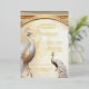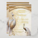 Un arrière - plan marbré clair en beige et blanc a un cadre voûté le long du bord supérieur et deux paons blancs et faux or. Les oiseaux semblent scintiller et briller et se tenir majestueusement régal sur le fond applaudi. Les deux oiseaux font face à des modèles de texte modifiables en noir qui reposent sur un arrière - plan blanc. L'arrière a le même design floral et un paon unique avec un autre modèle pour plus d'informations, si nécessaire. Dans le cas contraire, il suffit de clarifier le libellé. Idéal pour une mariage "paon thème", douche nuptiale, fiançailles, anniversaire ou douche en couple.