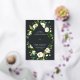 Nos faire-part de mariage en albâtre encadrent vos détails mariages avec une aquarelle peinte et un feuillage parsemé de pivoines blanches et de roses. Un choix moderne mais organique en vert et blanc avec des botaniques luxuriantes et des lettrages classiques sur un riche arrière - plan noir. La finition en feuille d'or complète le design pour un look luxueux.