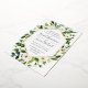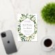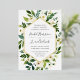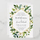 Notre faire-part de mariage Albâtre entoure vos détails de mariage avec un cadre géométrique moderne de verdure aquarelle peinte, feuillage botanique et fleurs de roses et de pivoines blanches. La finition en feuille d'or complète le design pour un look luxueux.