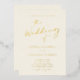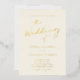Tout en un réel Gold Foil Calligraphie Script de crème Faire-part de mariage... Notre faire-part de mariage dorée à la mode est composée d'un script de calligraphie moderne combiné à la typographie serif et sans serif pour un faire-part de mariage élégant et chic... en papier or véritable. Dans l'encre grise au charbon de bois, le verso de l'invitation contient tous les détails que vous verriez habituellement sur des cartes séparées dans le paquet mariage, y compris l'heure et le lieu de réception, les options d'hébergement, le site Web du mariage, le RSVP et les informations sur le registre des cadeaux. Cette faire-part de mariage de style moderne a été conçue pour être à la fois élégante et économique... ainsi que pour gagner du temps. Tous les exemples de texte (mis à part les éléments de calligraphie graphique) peuvent être facilement révisés avec vos propres informations sur le modèle de personnalisation.