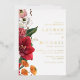 Ajoutez une touche de brillance à votre papeterie mariage avec cette invitation florale avec du texte en papier peint. Choisissez entre la feuille d'or, la feuille d'or rose ou la feuille d'argent pour compléter les flores d'aquarelle douce, y compris l'amaryllis rouge et le ranunculus rose. La palette de couleurs chaudes de l'automne se marie joliment avec la feuille réfléchissante, créant un look romantique haut de gamme. Idéal pour les mariages de vignobles, les fêtes de jardin ou les fêtes d'automne. Personnalisez facilement la mise en page, les polices et le libellé en fonction de votre vision mariage.