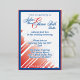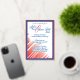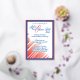 Capturez l'essence de la tradition américaine avec notre superbe faire-part de mariage imprimé sur papier d'aluminium. Avec d'élégantes étoiles blanches qui sortent du coin, complétées par des lignes rouges créant un sentier étoilé fascinant. Les mots bleus vifs correspondent parfaitement à la frontière, tandis qu'un cravate rouge audacieux aux couleurs patriotiques.