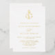 Cette élégante conception minimaliste de faire-part de mariage nautique avec REAL GOLD FOIL dispose d'un monogramme d'ancrage au sommet avec les initiales de la mariée et du marié, avec un arrière - plan blanc simple, un texte classique élégant, et une touche de calligraphie de script pour le "et".