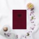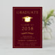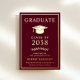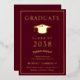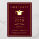 Annonce de remise de diplôme rouge bordeaux élégante avec votre choix de feuille d'or ou d'argent réelle, un chapeau de diplômé et une typographie moderne simple pour le nom du diplômé, l'année de promotion, l'université ou l'établissement d'enseignement supérieur, le diplôme et la spécialité ou les mentions