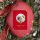 Voici notre faire-part de naissance photo avec un nœud en papier d'aluminium rouge et or élégant, une façon magnifique de célébrer l'arrivée de votre petit bout. La photo de bébé est magnifiquement entourée d'un ruban en papier d'aluminium doré noué en forme de nœud sur fond rouge. Le prénom et le deuxième prénom de bébé apparaissent en calligraphie élégante, avec le nom de famille et les informations de naissance en dessous. Le verso du faire-part offre un espace pour une photo supplémentaire et un message personnel. Ce souvenir luxueux et personnalisable est parfait pour partager votre joie avec la famille et les amis !