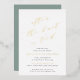 Simple et élégant brunch post-mariage invite caractéristiques "après le noeud est lié" en feuille d'or calligraphie lettrage. Personnalisez votre brunch avec les détails des jeunes mariés ci-dessous. Les invitations pour brunch mariages se retournent vers le vert sauge poussiéreux solide.