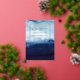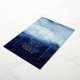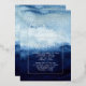 Invitation avant. Cette faire-part de mariage d'aquarelle audacieuse présente un riche mélange de bleu marine et d'indigo, complété par des éléments de papier peint brillants sur le devant qui ajoutent une touche luxueuse.