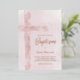 Invitation En Aluminium aquarelle croix rose Baptême