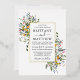 Le Faire-part de mariage moderne Elegant Watercolor Fleur sauvage comprend des fleurs sauvages jaunes, roses, violettes, bleues et blanches poussiéreuses, des feuilles d'eucalyptus, des feuilles verts sauge et d'autres plantes botaniques sur un cadre doré. Inclut un élégant script de calligraphie. Photo De Retour.