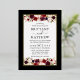 Aquarelle moderne Elégante Bourgogne Le Faire-part de mariage Floral comprend des roses bordeaux, des roses roses roses, des roses rouges et une végétation botanique. Cadre à huile d'or. Arrière - plan noir.