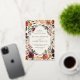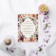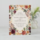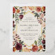 Piège à somptueux tons de terre, cet élégant faire-part de mariage floral ou les mariages d'automne ou d'hiver présente vos détails nichés à l'intérieur d'un hexagone allongé en feuille d'or entouré de roses d'aquarelle, de mamans et de verdure dans des couleurs d'automne rustiques, comme la pêche, l'ivoire, le rougissement, le bordeaux et le vert.