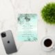 Vista blue (une teinte vert Seagram) rayé d'aquarelles pour un Mariage côtier, invitation vos invités à imaginer l'élégance et le plaisir d'une plage ou d'une station balnéaire spéciale. Des palmiers pour symboliser la paix et la prospérité. Peut être utilisé pour des douches ou un événement mariage. Personnalisez avec vos détails mariages, l'effet de papier peint apporte un sentiment de luxe pur. Reverse vers le bleu vista solide (couleur mousse de mer). Simple, mais avec une touche d'élégance.