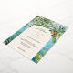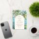 Faire-part de mariage tropicale aux couleurs de l'eau, avec palmiers, éléments hawaïens et tons bleus sereins. Parfait pour les mariages à la plage de boho et les fêtes d'été.