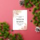 Invitation En Aluminium Aquarelle rose beige Boho Mariage floral tropical
