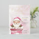 une joyeuse fête où la magie de Noël rencontre la douceur d'un premier anniversaire. L'aquarelle présente une Père Noël joyeuse dans un habit rose pâle, juteux, perché sur une cheminée rose, mêlant l'imagerie de Noël traditionnelle avec une touche fantaisiste et moderne. L'arrière - plan enneigé, les étoiles délicates et les tons pastel doux ajoutent à la chaleur, à l'émerveillement et à l'enchantement. Ce qui rend ce design spécial, c’est sa capacité à capter à la fois l’excitation festive de la saison et la tendresse du jalon d’un enfant, créant une invitation qui sent à la fois magique et chaleureuse.
