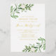 Famille Invitation et amis avec cette feuille d'or vert pressé bar mitzvah invitation. Cette invitation bat mitzvah présente des illustrations aquarelles de feuillage vert et de fleurs blanches et motif de verdure assortie. Personnalisez en ajoutant les noms, la date, l'heure, le lieu et d'autres détails de l'événement. Cette invitation de bar mitzvah est parfaite pour les bat mitzvah de printemps et de jardin. Cette invitation de bar mitzvah en feuille d'or est disponible en d'autres couleurs de feuille.