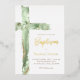 Invitation En Aluminium aquarelle vert agate cross Baptême