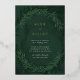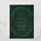 Feuilles d'or et de magnifiques lauriers spectaculaires élèvent cette élégante invitation de mariage avec un arrière - plan profond vert émeraude d'aquarelle.
