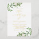 Aquarelle de verdure et de fleurs blanches Faire-part de mariage | Famille d'Invitations et amis à votre mariage avec cette belle invitation personnalisée feuille d'or pressé aquarelle verte invitation. Il présente des illustrations d'aquarelle de feuillage vert et de fleurs blanches, un script élégant et un motif botanique assorti. Cette invitation à la feuille d'or est parfaite pour les mariages de printemps, de jardin et d'hiver.