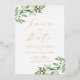 Invitation En Aluminium Aquarelle Vert Fleurs blanches Enregistrer La Date