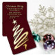 Invitation chic et moderne en feuille d'or pour Noël, réalisée en rouge profond, avec un arbre de Noël abstrait en feuille d'or et un texte indiquant Vous êtes invités. Personnalisez le texte personnalisé, au dos, pour répondre à vos besoins de fête de fin d'année.