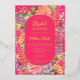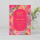 Bohème arche florale brillante invitation à la douche nuptiale avec joli peint à la main fleurs modernes vives et audacieuses mélange un sentiment vintage, avec des pivoines de corail, des fleurs violettes, roses roses roses et verdure avec une fête de mariée botanique sur le thème du boho. Avec une typographie de script moderne et rose néon avec une véritable feuille d'or.