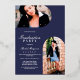 Cette invitation élégante et moderne à la remise des diplômes est parfaite pour votre fils ou votre fille. Il présente de l'or véritable, de l'or rose, ou de l'argent feuille géométrique circles linéaires, arc, et trois caractéristiques photos de l'invité d'honneur sur un simple arrière - plan bleu marine. Chic, contemporain, luxe et design : le design parfait à envoyer à des amis et à la famille.