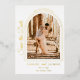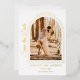 Beneath the arch, your names, wedding date, and celebration location are displayed in a refined, balanced layout that complements the modern arch silhouette. The combination of classic calligraphy, architectural lines, and radiant gold foil makes this design perfect for couples seeking a sophisticated yet contemporary announcement. Ideal for formal, modern, or romantic weddings, this Save the Date sets the tone for an unforgettable celebration.