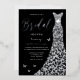 Invitation En Aluminium Argent Foil Heart Gown avec Fête des mariées noire