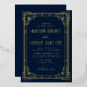 Invitations de mariage art déco moderne avec vos détails mariages encadrés par un cadre art déco en feuille d'or avec un arrière - plan de marine. Conçu pour se coordonner avec notre collection de mariages Art Déco Moderne.