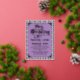 An elaborately detailed Art Nouveau wedding invitation featuring a purple thistle scroll and vine striped pattern on a light purple background, with a bold and delightful color palette. A pairing of elegant fonts has been carefully selected to accompany this invitation's decorative floral announcement text, however, they can be changed to meet your needs. You can change the foil color as well.