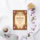 Une carte de 5"x7" à plat avec une bordure Art Nouveau sur le devant, ainsi que des titres et des noms dans Gold Foil. Au verso se trouve le texte des informations de réception, etc.