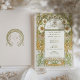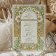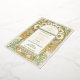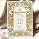 Découvrez l'élégance d'une époque révolue avec ce magnifique faire-part de mariage d'inspiration Art Nouveau. Dotée de motifs floraux complexes et de lignes gracieuses qui rappellent les motifs classiques d'Alphonse Mucha, cette invitation est ornée de luxueux motifs en feuille d'or qui mettent en valeur l'oeuvre détaillée. L'avant présente un beau mélange de tons verts, dorés et ivoire avec des fleurs délicates et des bordures ornées. Le dos poursuit le thème vintage avec un monogramme minimaliste et des fioritures élégantes. Parfait pour un mariage sophistiqué et intemporel, cette invitation capture la beauté et la romance de l'art vintage.