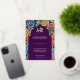 Invitation En Aluminium Art populaire indien Eléphant Mariage Eggplant Or