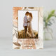 Votre photo, belle pêche, fleurs en terre cuite pâle et feuilles bruns ainsi que les mots Save the Date en feuille d'or rose véritable sont présentés sur ce design floral. CORRESPONDANCE d'objets dans notre collection.