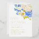 Invités Invitations à votre événement avec cette invitation personnalisable baby shower de feuille d'or. Il présente un bouquet d'aquarelles bleu et blanc avec des accents floraux et verts. Personnalisez cette invitation de baby shower hydrangea en ajoutant le nom, l'heure, la date et d'autres détails de l'événement. Cette invitation au baby shower botanique est parfaite pour les baby showers de printemps et d'hiver.