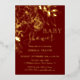 Invitation En Aluminium Baby shower floral moderne rouge foncé et or