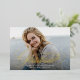 Avec son élégant texte en feuille, cette faire-part de graduation en une photo et une invitation est la façon parfaite de célébrer votre grade et de montrer une belle photo senior. Cette conception horizontale comprend un script classique "gradué" dans votre choix de feuille avec votre texte personnalisé - nom, école, année, etc. Sur le dos noir coordonné, vous trouverez de la place pour les détails de l'invitation de la fête de remise de diplômes dans le texte sophistiqué correspondant. Ce design simple mais élégant fait partie d'une collection de Lea Delaveris Design. Trouvez plus de couleurs et de styles, de déco, de matériel de fête et plus encore.