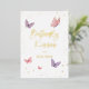Carte de remerciement Baisers de papillon avec des papillons violets et roses qui voltigent et des points dorés.