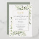 Avec une véritable feuille d'or et une délicate verdure aquarelle, cette invitation chic pour un baptême de couple peut être personnalisée avec vos initiales de monogramme et les informations spéciales relatives au baptême de la mariée, avec un fond sauge argenté au verso. Conçue par Thisisnotme©
