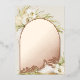 Baptême tropical chic ou invitations à baptême dans une palette de couleurs neutres attrayantes comprennent une arche en feuille d'or rose portant votre cérémonie d'église et les détails de la fête, accentuée de frondes de palmiers d'aquarelle vert pâle, feuillage de l'île de la plage, orchidées blanches, botaniques séchés aux saumons et gazon de la pampa.