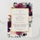 Le baptême floral chic ou l'invitation à la baptême présente une bordure de marsala bordeaux violet, rose rousse et bleu poussiéreux, avec feuillage botanique luxuriant et verdure et garniture en feuille d'or. Personnalisez avec votre cérémonie d'église et les détails de la célébration en lettres modernes sur un riche ivoire d'arrière - plan blanc.