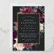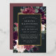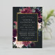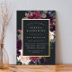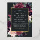 L'élégante invitation à la bat mitzvah à la floraison présente une bordure de marsala bordeaux violet, rose vif et bleu poussiéreux, avec un feuillage botanique luxuriant et des garnitures en feuille d'or. Personnalisez avec votre cérémonie du temple et les détails de la célébration en lettres modernes sur un riche arrière - plan au charbon de bois.